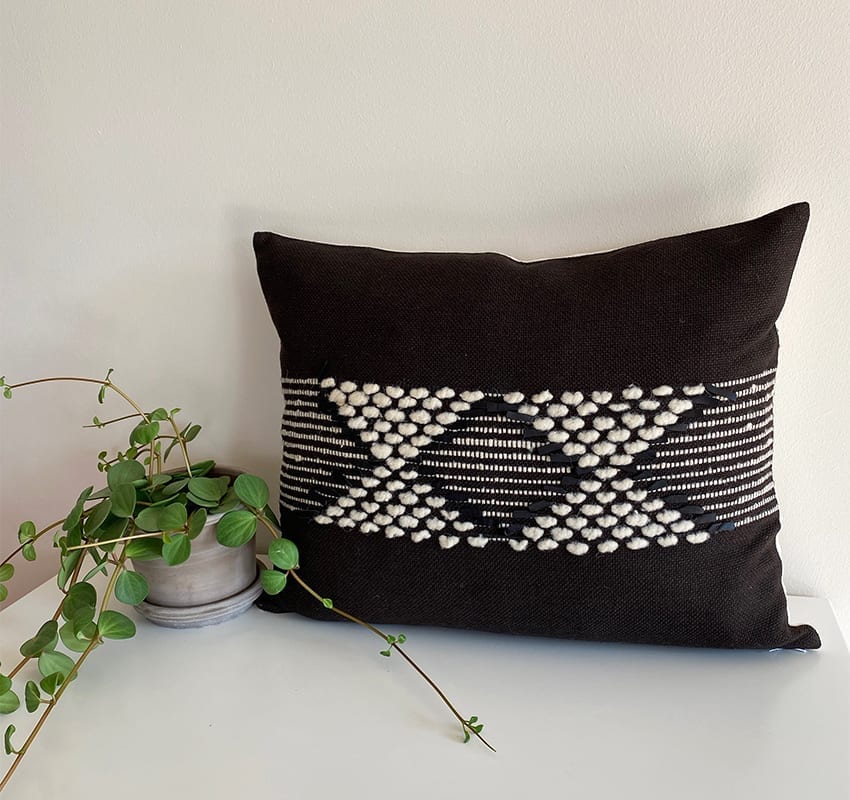 Découvrez nos superbes housses de coussin tissées à la main, tout droit venues du Maroc. Avec leur motif unique au centre, ces housses sont un véritable atout pour votre intérieur. Fabriquée à partir d’un mélange de laine et de cuir, la housse de coussin de couleur marron foncé se marie parfaitement avec une décoration scandinave. Pour plus de personnalisation, associez-la avec la housse de coussin assortie de Tibladin en noir et blanc.